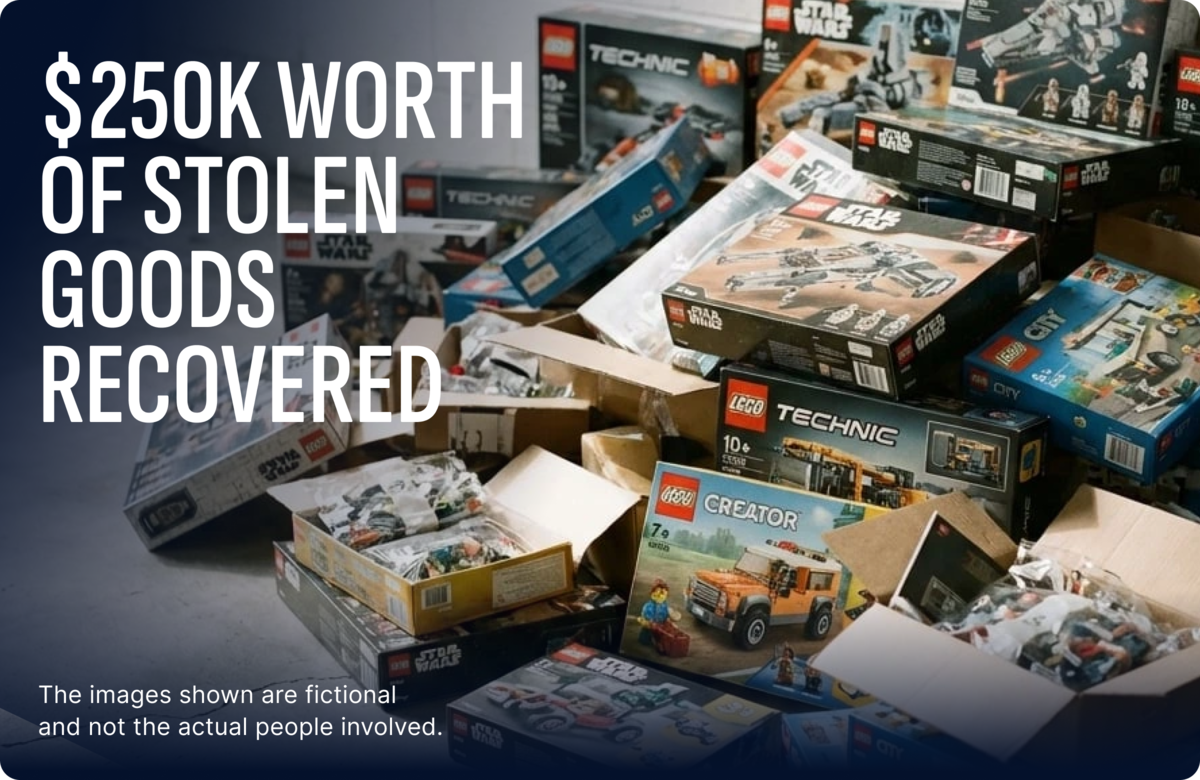 An offender was connected to $120.5K in total event value across 90+ events. Intel on this person also led investigators to arrest a receiver, who was selling items stolen by the repeat offender from a major Australian retailer.